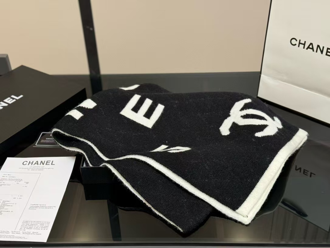 CHANE1 ダブルC 大きなロゴ文字入りカシミヤスカーフ【50%割引+送料無料】